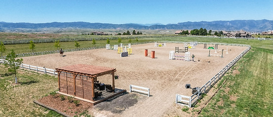 Our outdoor ring is expansive and meticulously maintained, featuring premier sand and rubber footing, a full sprinkler system for optimal consistency, and daily care to ensure pristine conditions. Show quality jumps and thoughtfully designed courses elevate your training. The ring offers stunning views of the surrounding mountains for an inspiring backdrop. Additional outdoor options include a lush grass field for flatwork and fitness needs.